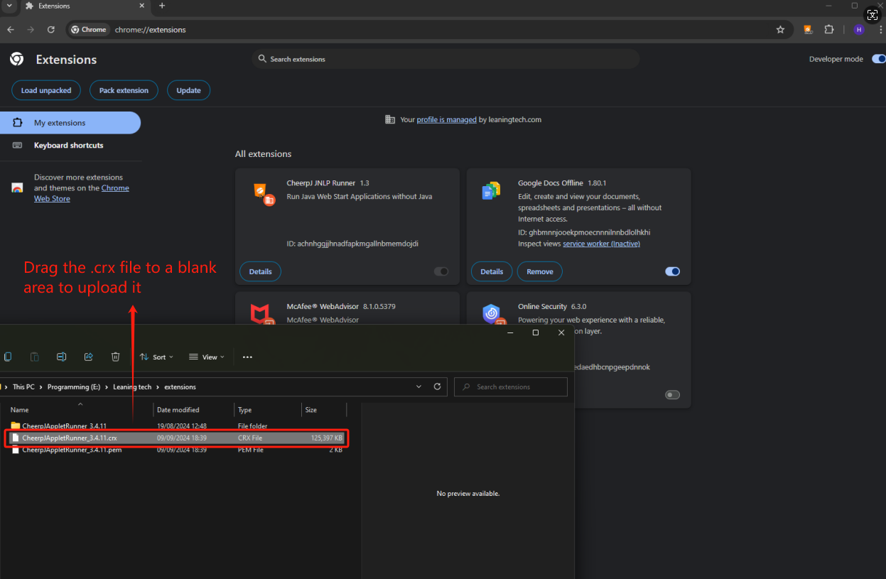 This tutorial will walk you through the steps to pack the CheerpJ Applet Runner extension in Chrome, making it ready for distribution and deployment, particularly useful in enterprise environments like deploying through Group Policy Objects (GPOs).