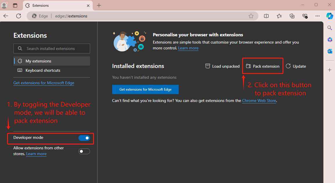 Packing the extension in Edge